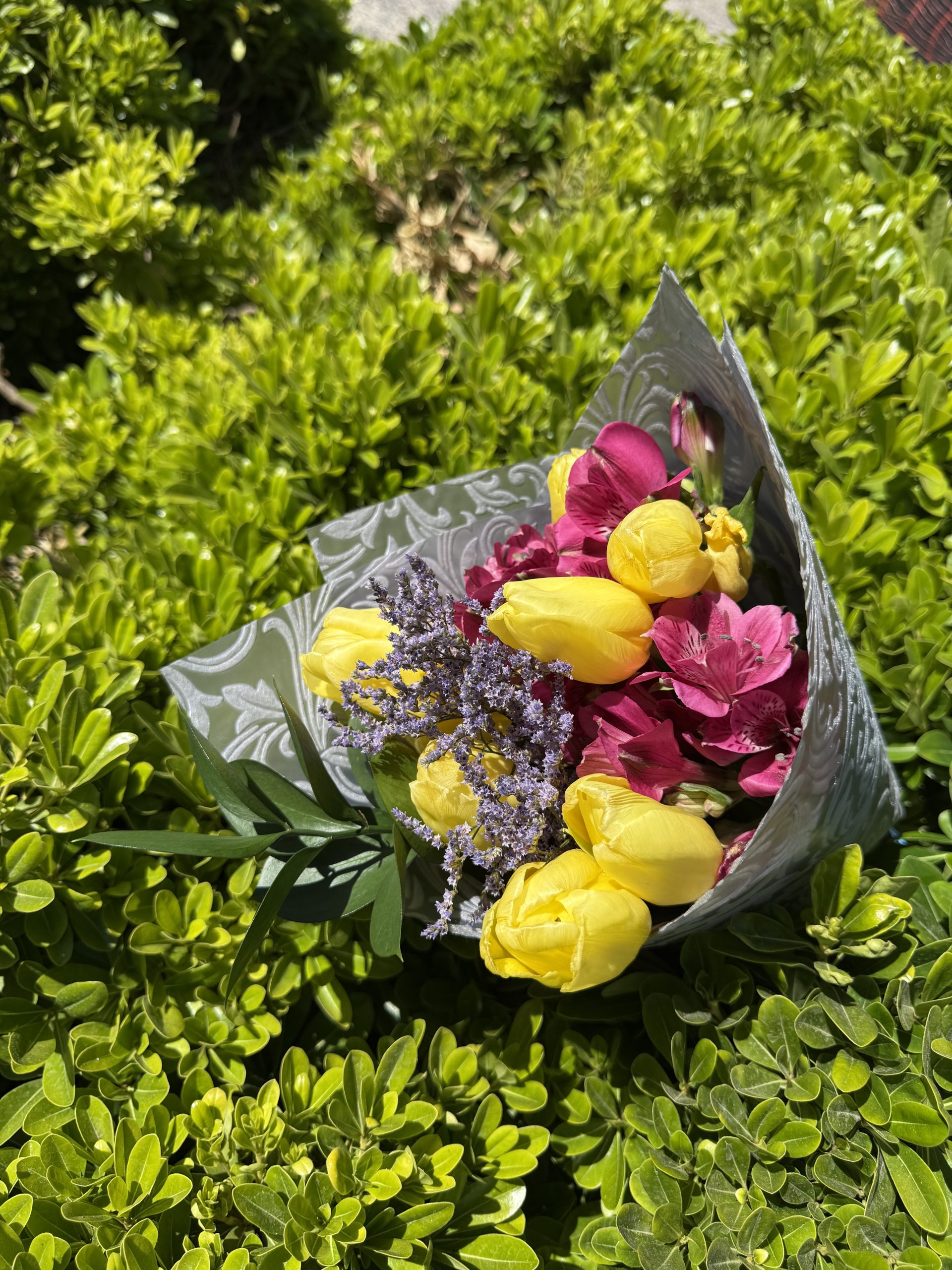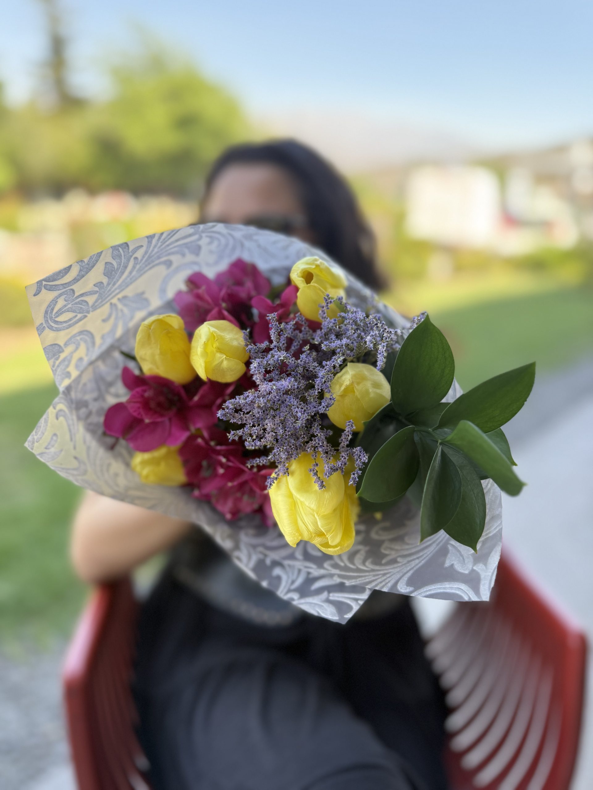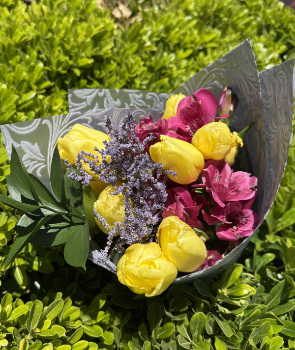 Un arreglo lleno de elegancia y alegría, donde cada tulipán combina dos tonos armoniosos, creando un contraste delicado y visualmente atractivo. Sus pétalos en forma de copa y sus tallos firmes se complementan con hojas verdes frescas, dando al ramo un estilo natural y sofisticado. Perfecto para regalos, celebraciones o decoración, este ramo transmite alegría, cariño y frescura en cada detalle.